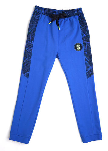 Повседневные брюки на манжетах c карманами в боковых швах. Изготовлены из футера. В поясе эластичная тесьма и шнур для регулировки объема. Отделкой служит широкая вставка с контрастной верхней частью и яркая вышивка.