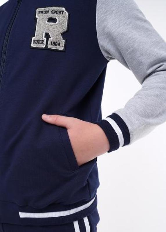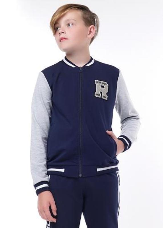 Набросьте и вперед! Куртука- бомбер из эластичного футера. Бейсбольный воротник. Застежка с закрытыми зубьями в молнии.Удобные карманы. Манжеты, пояс и стойка в полосатый рубчик. Махровая нашивка в стиле "регби".