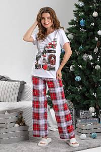 Костюм молодежный из трикотажного полотна «кулирка» в комбинации двух видов: гладкокрашеного и с набивным рисунком в клетку, состоящий из футболки и брюк. <br />