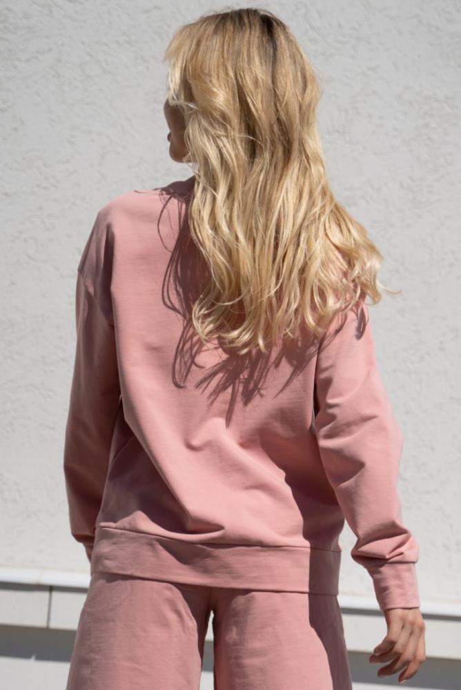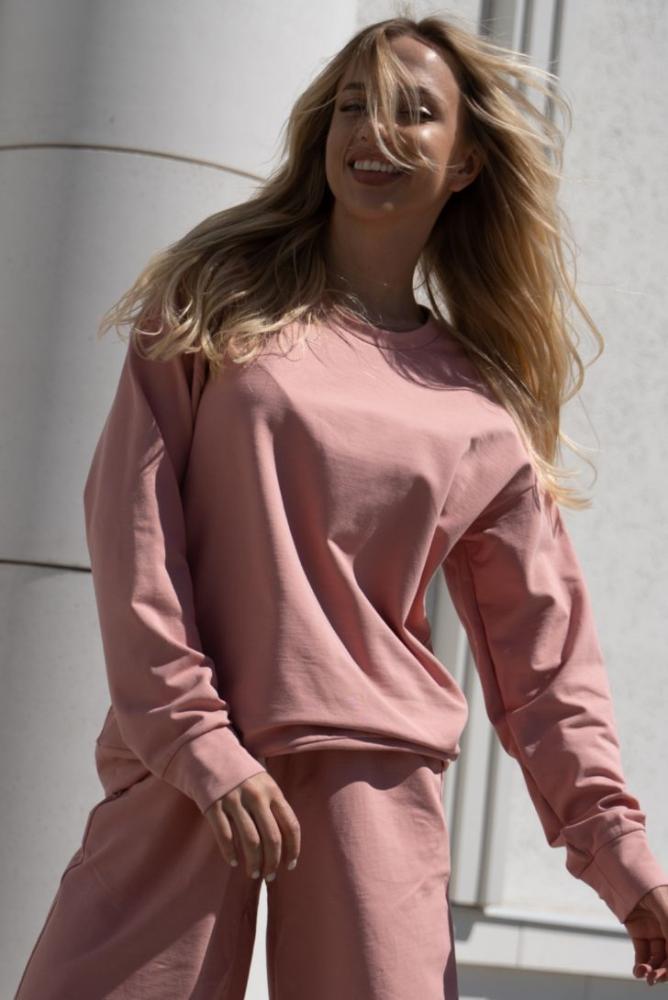 Джемпер свободного прилегания со спущенной линией плеча. Вырез горловины круглый.
