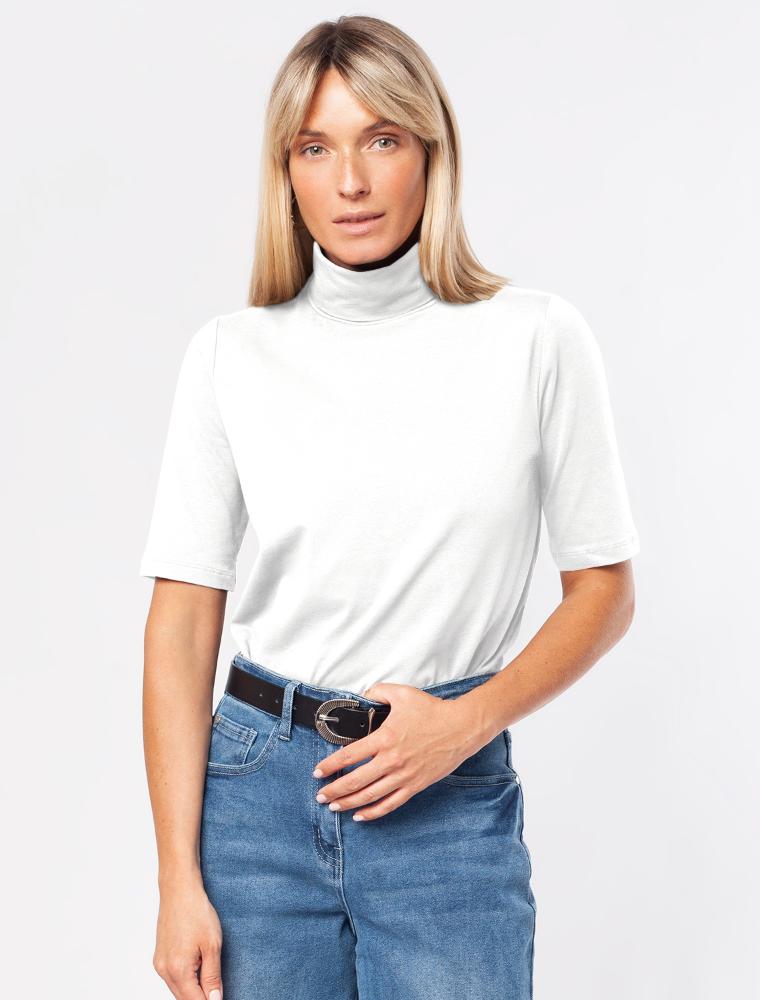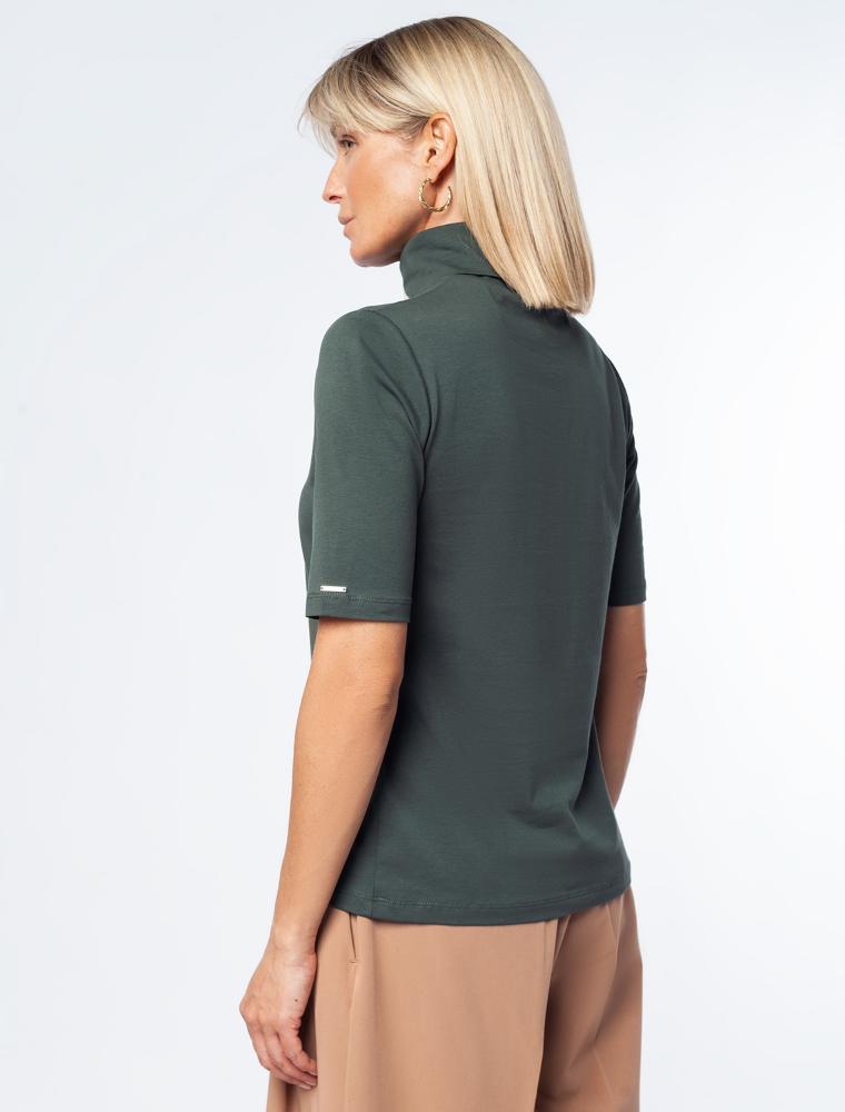 Водолазка с коротким рукавом выполнена из премиального хлопка с добавлением эластичных волокон. Гладкий трикотаж обеспечит гарантированный комфорт и удобство в использовании. На рукаве изделия металлическая нашивка с логотипом бренда.