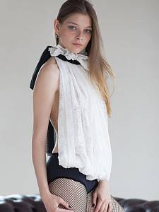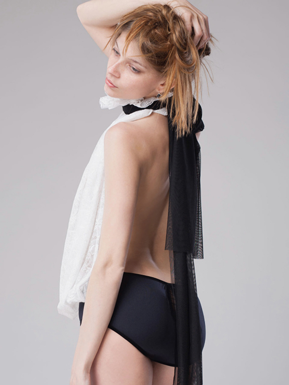 Изысканное боди из ажурного кружевного полотна с открытой спиной завязывается на широкую ленту из сетчатой ткани. Трусы из полиамида, сзади украшение в виде капельки. Такое боди уместно как в будуаре, так и на гламурной летней вечеринке. Будьте в центре внимания!