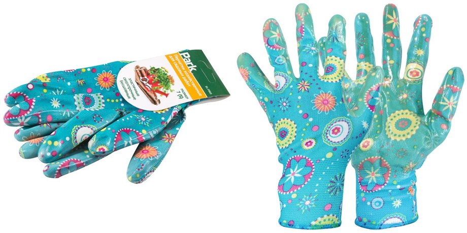 Материал: полиэстер (с цветным рисунком), покрытие ладонной части - нитрил (прозрачный).