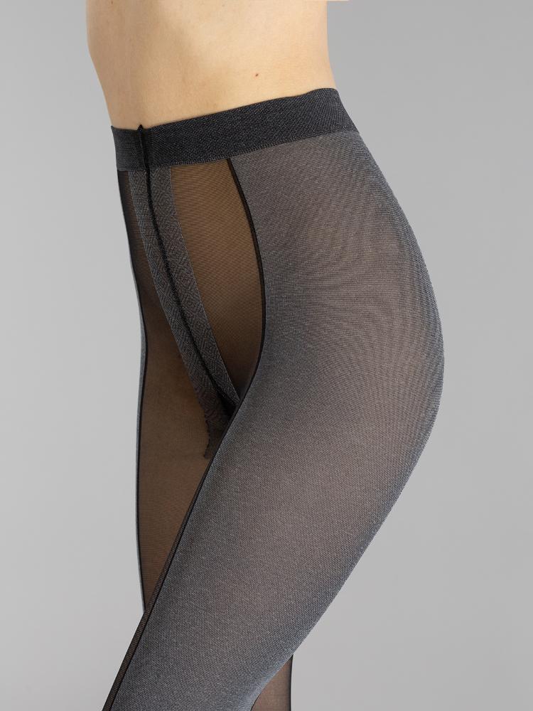 Прозрачные фантазийные колготки с оплетенным эластаном, плотностью 40 ден, с комфортным широким поясом, гигиеничной ластовицей и усиленными плоскими швами. Боковые части модели декорированы непрозрачными широкими полосками с эффектом "меланж". Эластан, обкрученный полиамидом, обеспечивает хорошую растяжимость модели и придает ей мягкость. Колготки связаны на новейшем оборудовании, что гарантирует их перманентно высокое качество.