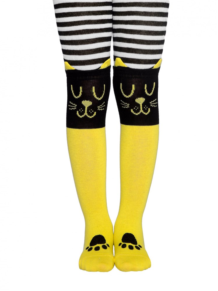 Мягкие эластичные удобные и практичные детские колготки из хлопка, с рисунками-мордашками и декоративными элементами на ножках в виде ушек.