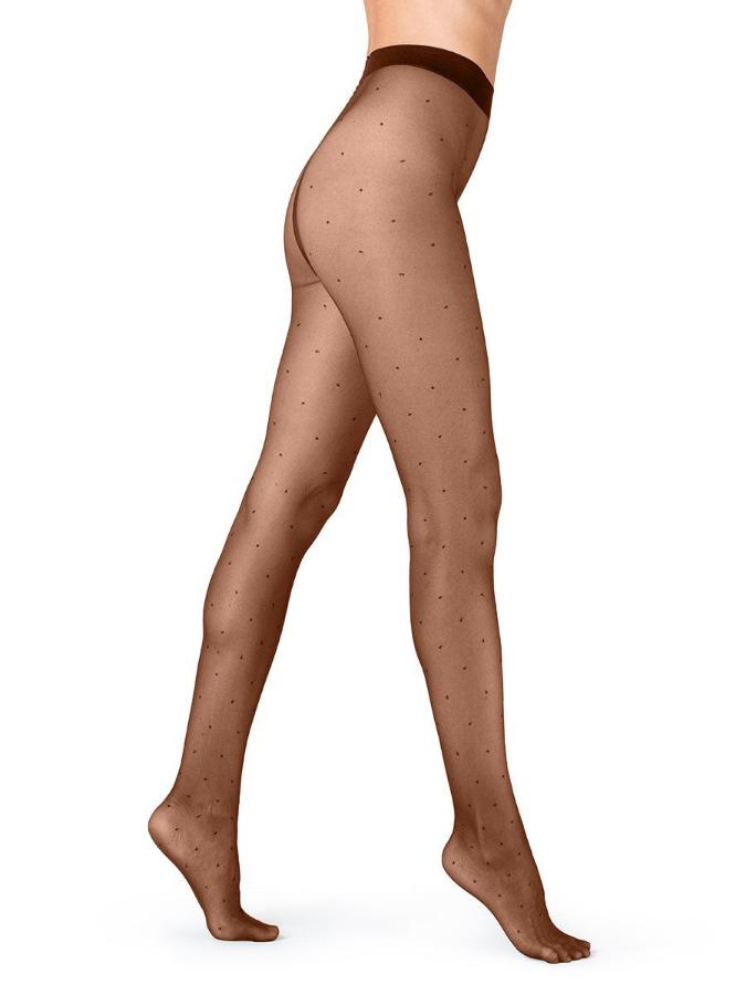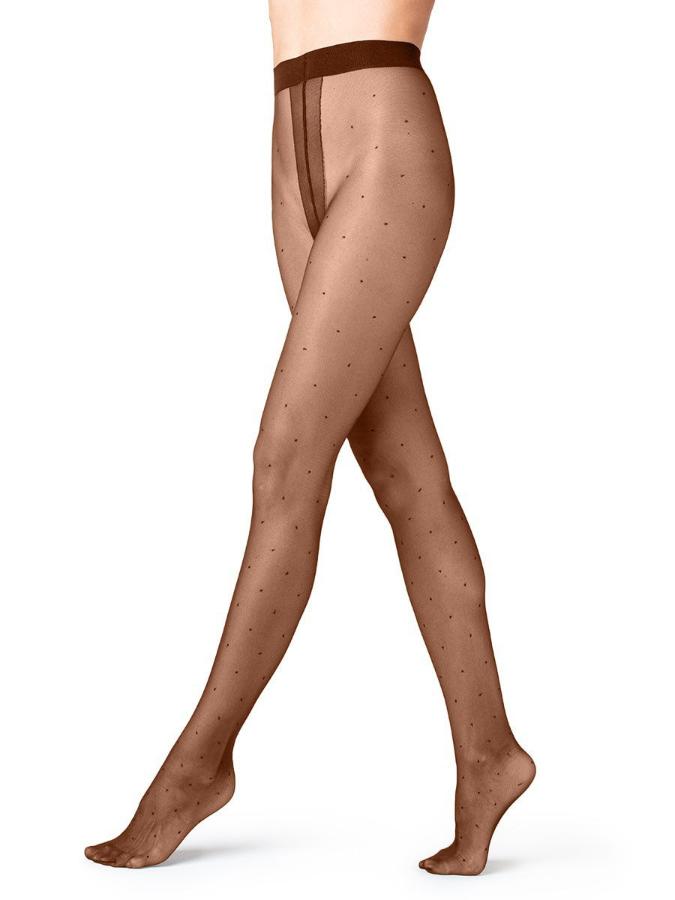 Тонкие эластичные колготки с рисунком горошек", однородные по всей длине, с комфортным поясом. Плоский шов, гигиеничная хлопковая ластовица, невидимый усиленный мысок."