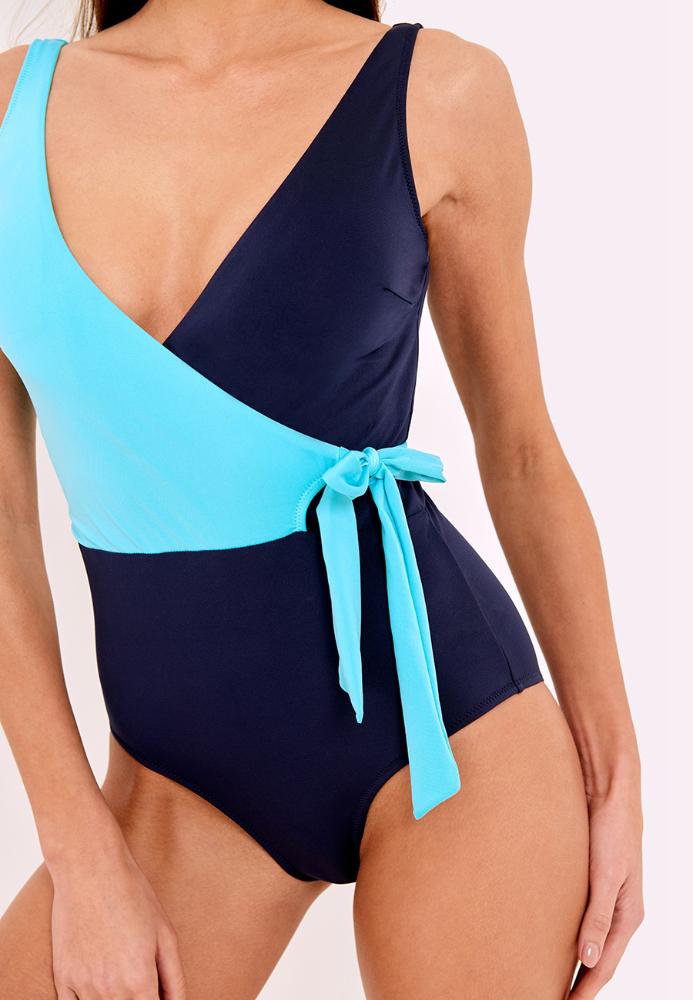Женственный слитный купальник без застежек. Эффектные V-образные вырезы на груди и спине создают волнующий образ. Лиф без косточек дополнен съемными формованными вкладышами. Спереди имитация запАха и декоративные завязки. Оригинальный и комфортный вариант.