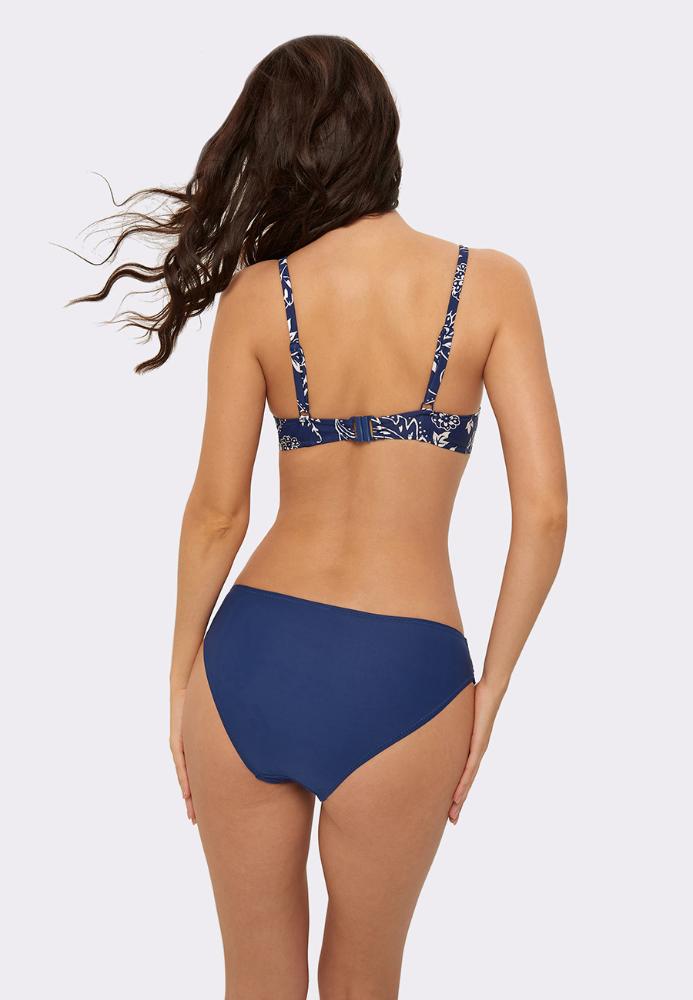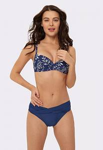 Изысканный и женственный купальник для девушек, знающих себе цену! Выполнен из приятного телу эластичного материала глубокого синего цвета. Лиф дополнен роскошным растительным принтом. Формованные чашки, косточки и боковые корсетные вставки обеспечивают идеальную поддержку. Push up во всех размерах. Тонкие бретели регулируются по длине. Сзади удобная пластиковая застежка. Плавки с низкой посадкой дополнены подкладом. Пояс дополнен изящной драпировкой.<br /> 80%ПА/20%ПУ