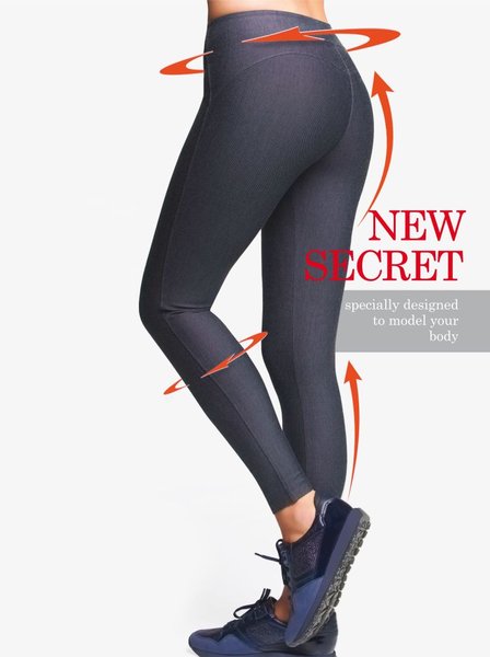 Облегающие женские легинсы из эластичного трикотажного полотна с эффектом коррекции фигуры и широким утягивающим поясом.