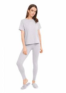 Лосины прилегающего силуэта из хлопкового трикотажного полотна. По линии талии широкий пояс. Благодаря эластану в составе модель имеет хорошую посадку по фигуре. По низу левой детали принт. Перевод: "Мой путь"<br />