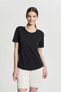 Женская футболка полуприлегающего силуэта с фигурным низом. Горловина окантована.