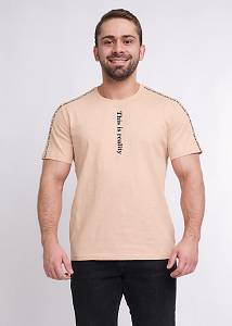 Стильная мужская футболка из флама с 100% хлопковым составом. Модель с круглым вырезом горловины и коротким рукавом, дополнена крупным текстовым принтом, что придает ей оригинальности. Изделие подойдет для активных прогулок и встреч.