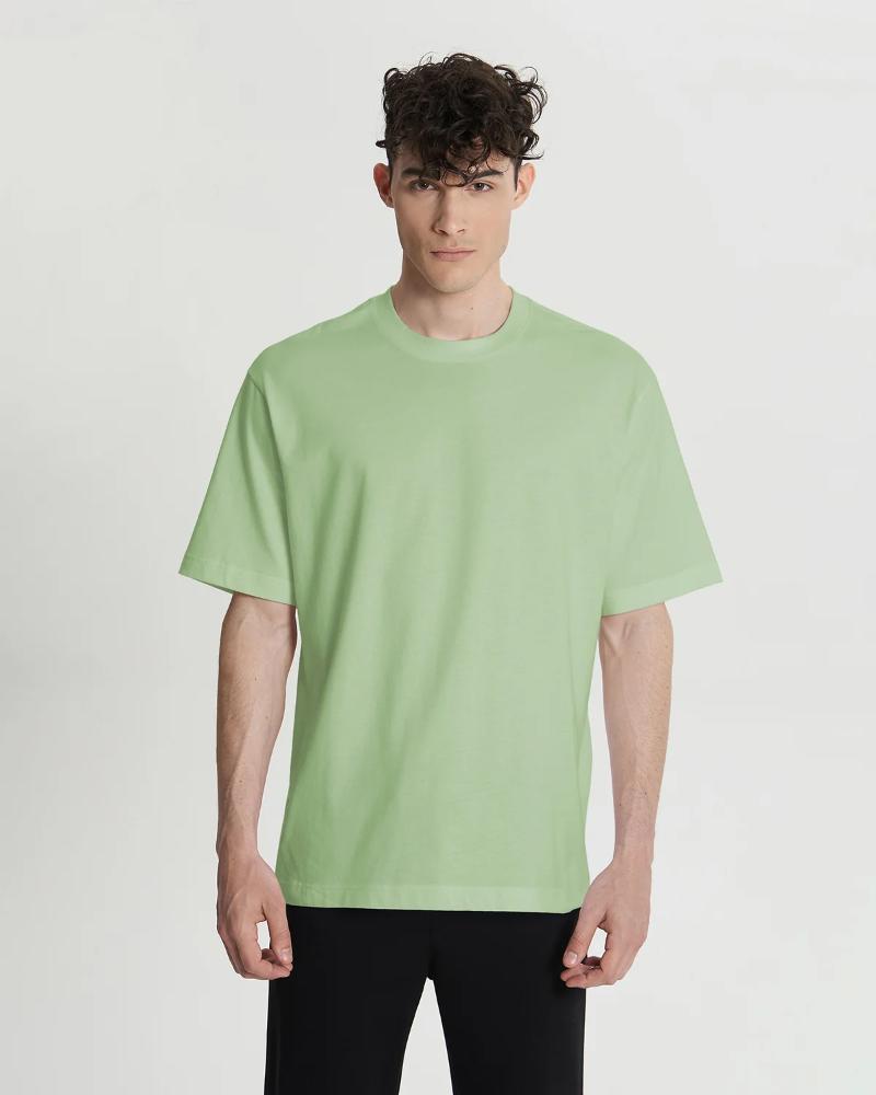 Футболка прямого силуэта. Укрепление по горловине спинки. Горловина из рибаны, по переду горловины отстрочка.