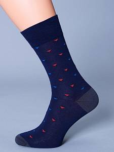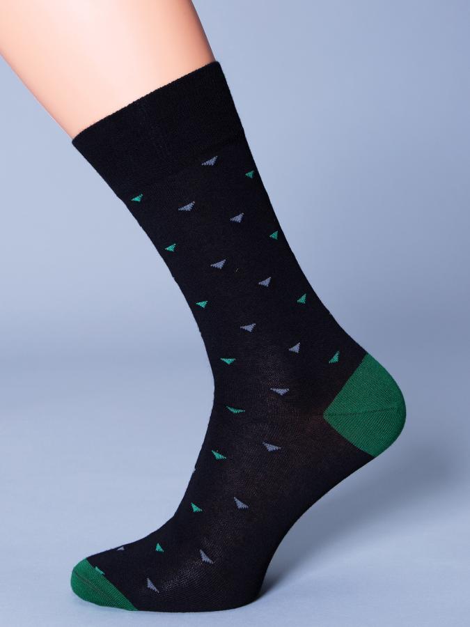 Премиальные мужские носки из мерсеризованного хлопка с разноцветным рисунком "треугольники". Пятка и мысок модели усилены, анатомическая резинка не сползает и не передавливает ногу.