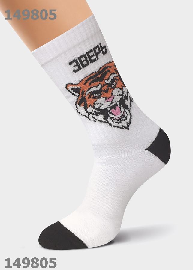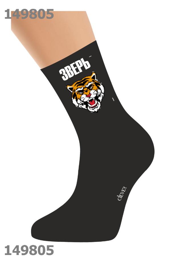 стильные мужские удлиненные носки с с изображением тигра-символ года и надписью ЗВЕРЬ <br />