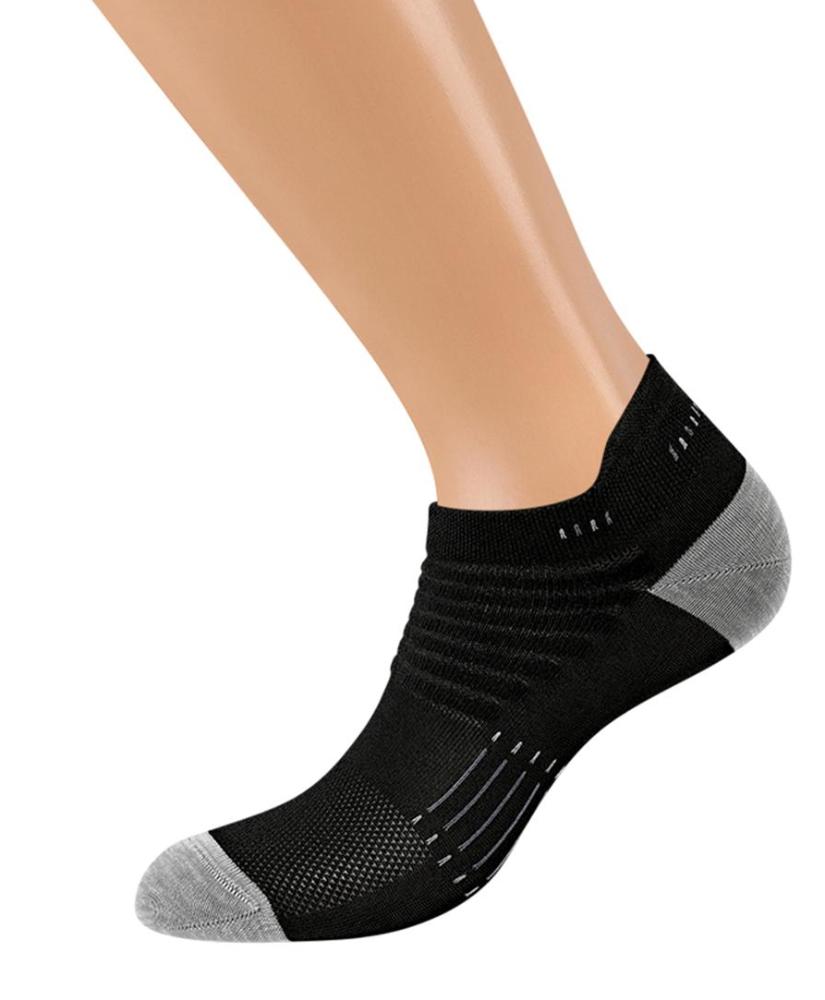 Укороченные спортивные мужские носки из полиамида с фактурной перфорацией по верху стопы.. Материал в составе обладает влагоотводящими свойствами и отличается высокой прочностью. Завышенная пятка, мягкая удобная резинка и кеттельный (плоский) шов на мыске обеспечивают оптимальный комфорт и превосходное облегание.