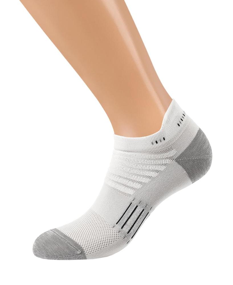 Укороченные спортивные мужские носки из полиамида с фактурной перфорацией по верху стопы.. Материал в составе обладает влагоотводящими свойствами и отличается высокой прочностью. Завышенная пятка, мягкая удобная резинка и кеттельный (плоский) шов на мыске обеспечивают оптимальный комфорт и превосходное облегание.<br />