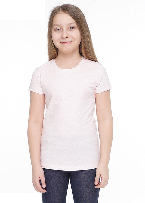 Базовая футболка для девочки из хлопка малого объема с коротким рукавом. Горловина круглая с окантовкой.