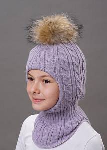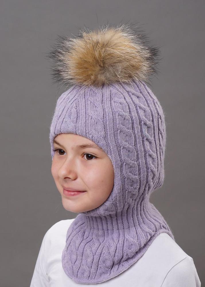 Шапка-шлем со съемным помпоном из натурального меха на кнопке, выполнена фактурным переплетением "косы" из итальянской пряжи с содержанием шерсти альпаки, в области шеи - ластичная ножка для более плотного прилегания. Модель на синтепоне с хлопковым подкладом. Размер 48-52