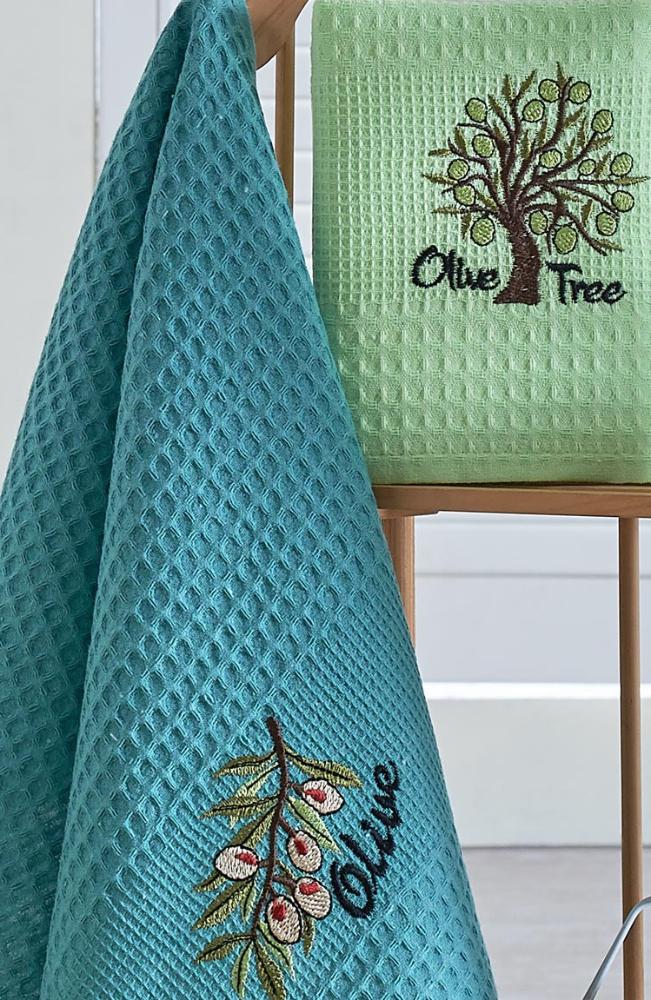 Такие салфетки с вышивкой покупаются домой для того, чтобы создать атмосферу уюта. Приятные оливковые тона вафельных салфеток добавляют интерьеру особую нотку тепла, повеявшую с самого средиземноморья.