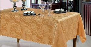 Скатерть водоотталкивающая, размер 137*183 см. с ажурным краем. Состав-100% полиэстер. 4 дизайна. Подходит для ежедневного и праздничного применения.