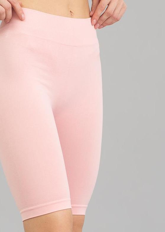 Мягкие бесшовные шорты-велосипедки из микрофибры облегающего кроя, с широким комфортным поясом, однотонные.