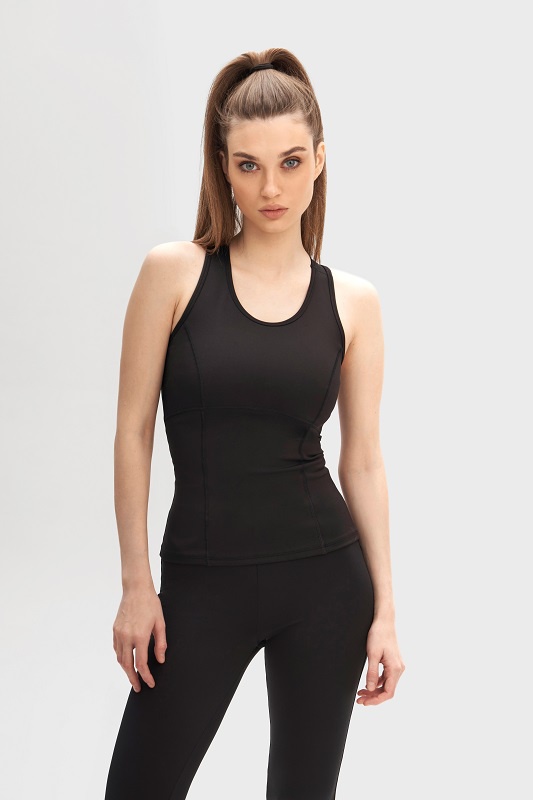 Спортивная майка, на груди двойная, что обеспечивает поддержку, сзади - вырез борцовка. Самый комфортный вариант для занятий фитнесом. Пошита из матового бифлекса: гипоаллергенного, воздухо- и влагопроницаемого, идеально облегающего и износостойкого даже при многократных стирках. Рекомендуем носить с леггинсами и велосипедками из нашей коллекции SLINKY.<br />