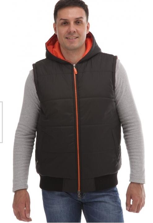 Жилет из курточной ткани с капюшоном. Утеплитель - синтепон. Внутренний карман фиксируется молнией. Передние карманы на молниях.<br />