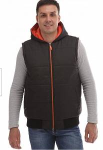 Жилет из курточной ткани с капюшоном. Утеплитель - синтепон. Внутренний карман фиксируется молнией. Передние карманы на молниях.