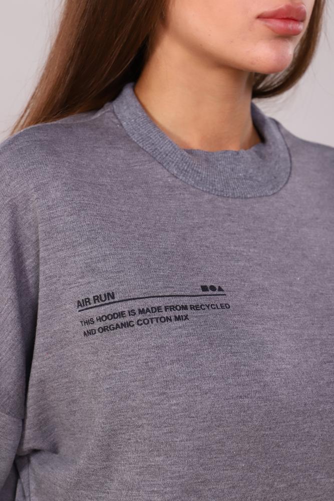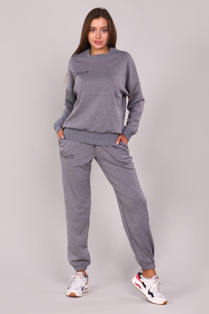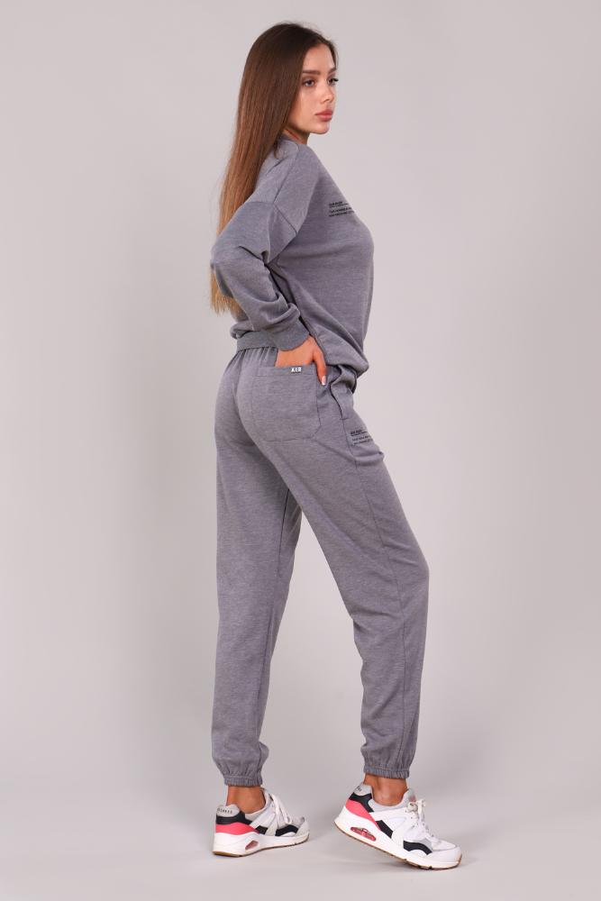 Женский костюм из интерлока. Толстовка с круглым воротом и печатным принтом на груди. На брюках имеется печатный принт, 2 боковых кармана и 1 настрочной карман с вышивкой AIR<br />