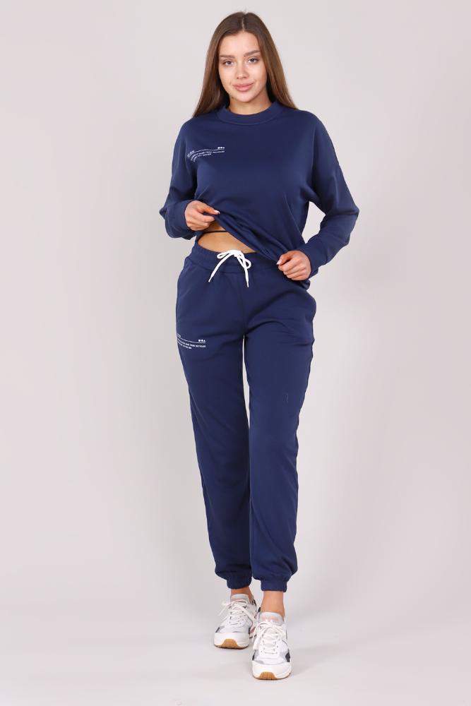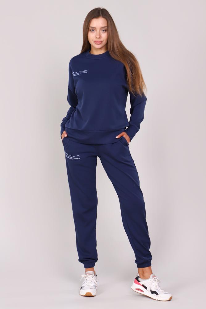 Женский костюм из интерлока. Толстовка с круглым воротом и печатным принтом на груди. На брюках имеется печатный принт, 2 боковых кармана и 1 настрочной карман с вышивкой AIR