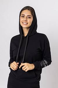 Классическое худи свободного кроя с капюшоном. Спущенное плечо, карман кенгуру. Рукав декорирован принтом, на спинке вышитый логотип .<br />