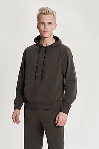 Классический худи свободного кроя с капюшоном. Спущенное плечо, карман кенгуру, на спинке вышитый логотип бренда.