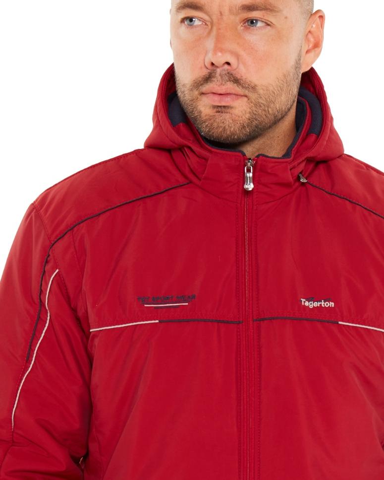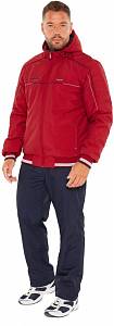 Куртка с отстёгивающимся капюшоном. Ткань с полиуритановым покрытием (PU) с внутренней стороны обеспечивает защиту от влаги. Капюшон фиксируется с помощью контактной ленты (липучки). Пояс выполнен из 3-х цветной рибаны. Утеплитель куртки синтепон и флисовая подкладка. Для удобства надевания изделия в рукавах вместо флисовой подкладки используется таффета. Молния в борт декорирована цветными нитками (светло-серый/гранат). В рельефы рукавов и передней кокетки вставлены цветные канты. Слева и справа на груди цветные вышивки в фирменном стиле. Передние карманы на молниях под листочками, декорированными вышивками. С левой стороны расположен горизонтальный внутренний карман на молнии. Брюки с поясом на резинке. Брючины заужены к низу. С внутренней стороны пояс фиксируется шнурком. Карманы на молниях под листочками.