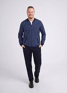 Мужской бомбер на молнии из плотного футерного трикотажного полотна с текстурным узором. Особенностью изделия являются разнонаправленные линии и фирменная фурнитура. Карманы и манжеты добавляют удобства в носке. Стильное решение для повседневного образа.