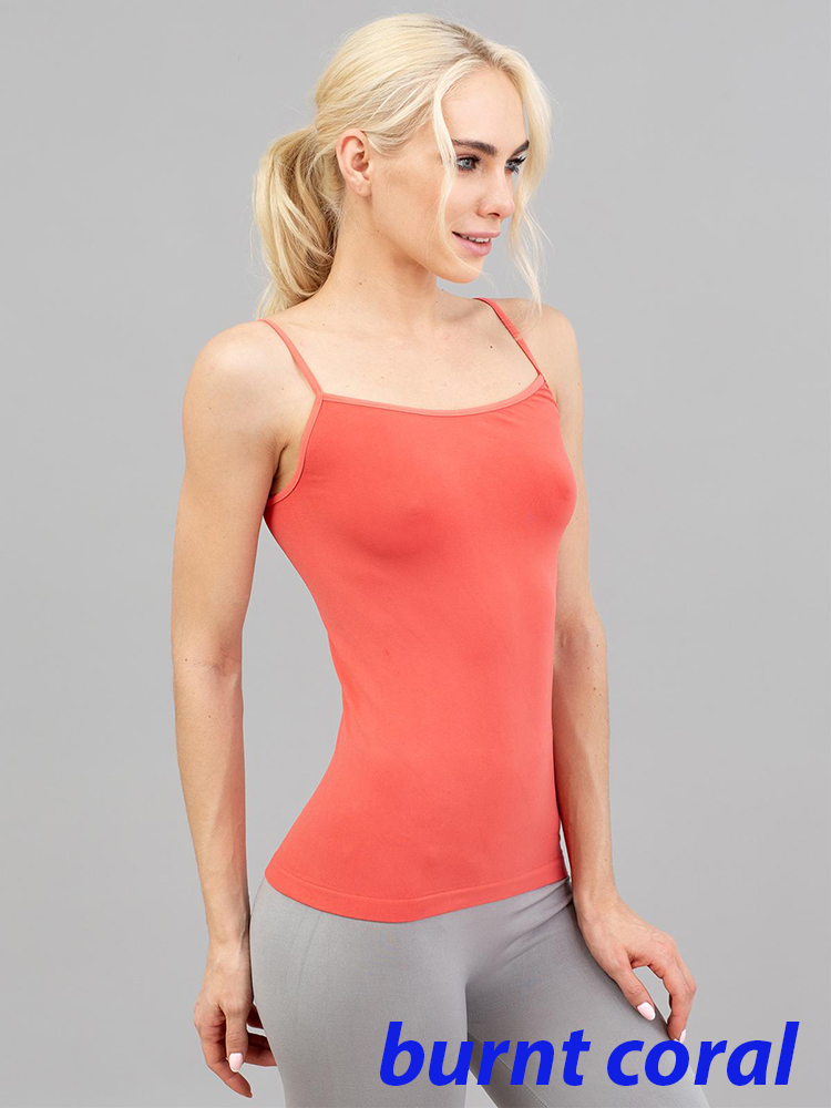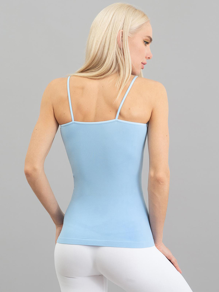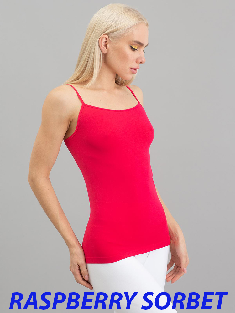 Бесшовная майка на тонких бретелях, выполненная из мягкой микрофибры. Модель цветная, доступна обширная гамма оттенков.