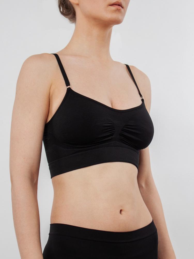 Бесшовный топ-брасьер с регулируемыми бретелями. Выполнен из мягкой микрофибры с комфортной поддержкой груди размеров В, С, D. Дышащая, стойкая к износу ткань, обеспечивающая самые приятные тактильные ощущения при носке. Благодаря бесшовной технологии достигается идеальное облегание, максимальный комфорт и свобода движений, не заметен под одеждой.
