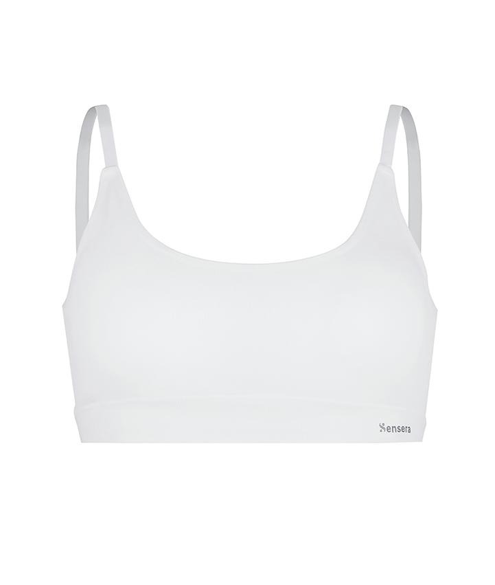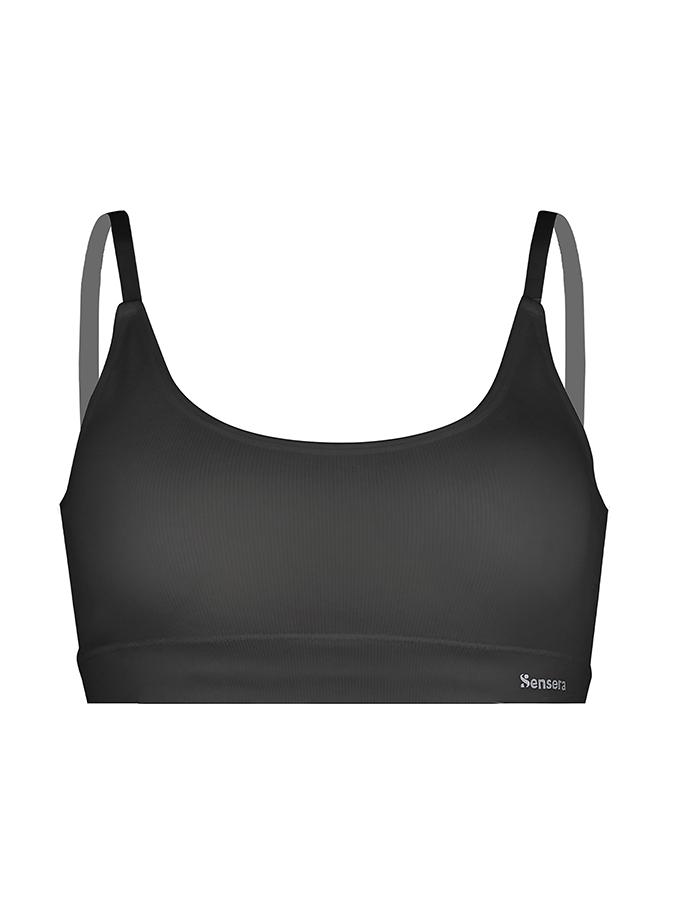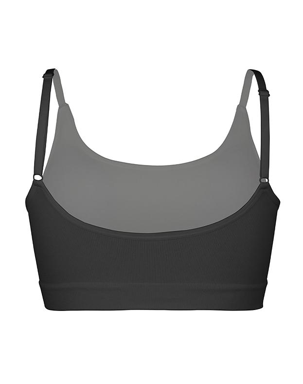 Бюстгальтер-топ из эластичного рибового полотна в вертикальный рубчик с мягким подкладом и съемными вкладышами. Без каркасов и боковых корсетных вставок. Регулируемые не съемные тонкие бретели.. Брендированная лента под грудью.