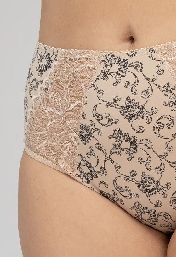Трусы из эластичного принтованного полотна, микрофибры, эластичного кружева, х/б ластовица, с высокой линией талии. Комплектуются к моделям модной коллекции Мадлен.
