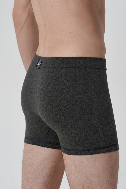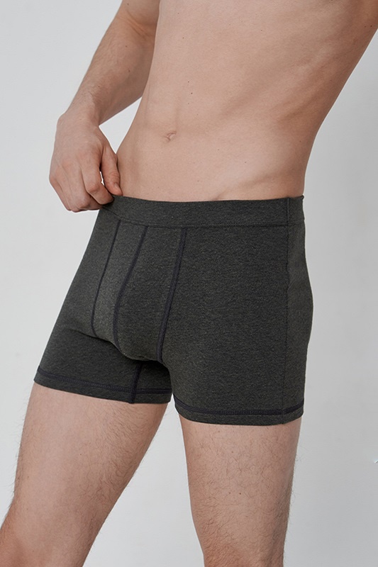 Трусы боксеры средней длины. Пошиты из американского тонковолокнистого хлопка меланжевого окрашивания с добавлением эластана. Благодаря высокому качеству полотна изделие не растягивается и не садится при стирке, гипоаллергенно и тактильно комфортно.