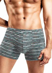 Шорты удлиненные комфортной посадки выполнены из оригинального полотна в мелкую полосу. Трусы дополнены жаккардовым логотипом.