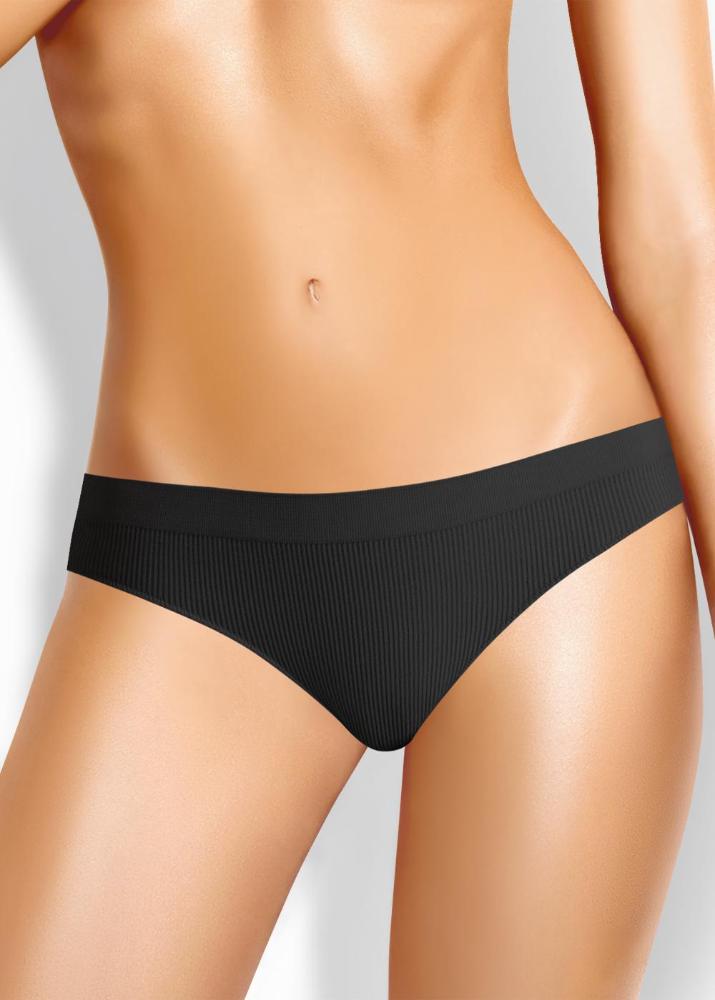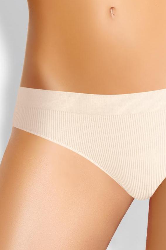 Бесшовные трусы бикини из упругого трикотажного полотна в рубчик. Шелковистая экологичная ткань приятна для тела, не электризуется и подходит для чувствительной кожи. Добавка эластана в женское нижнее белье придает им эластичность и гарантирует, что женские трусы не будут скатываться и не полиняют даже после многочисленных стирок. Трусы незаметны под одеждой и одинаково комфортны для отдыха, для бега, для ходьбы и для фитнесса.