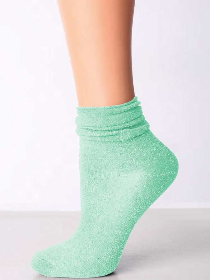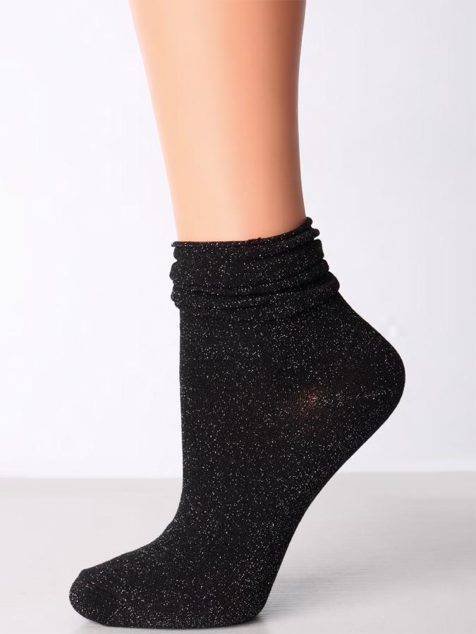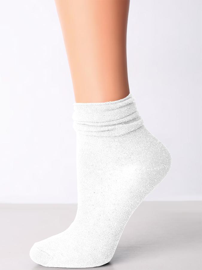 Хлопковые фантазийные носки со сборчатым верхом. Весь носочек украшен мелкими вкраплениями блестящей металлизированной пряжи.