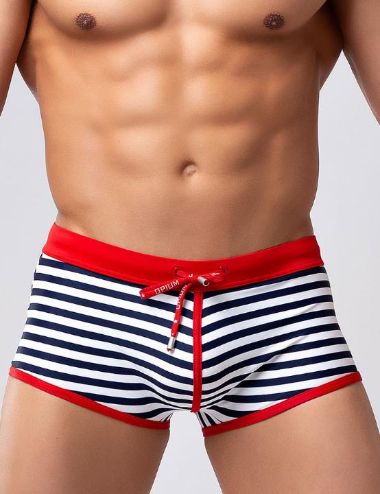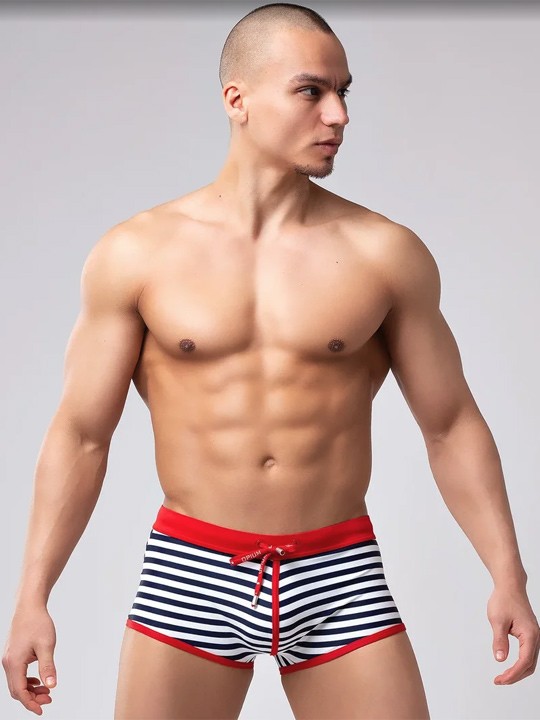 Мужские плавки-боксеры из быстросохнущего эластичного полиамида, в морском стиле. Бело-синяя полоска в сочетании с ярко-красными элементами выглядит достаточно нарядно и актуально. Необычное дизайнерское решение – вертикальный красный кант по центру – даёт интересный акцент этой модели. Брендированный красный шнурок с металлическими эглетами – дополнительный модный элемент. Внутренняя конституция плавок имеет подкладку спереди и особый гульфик «puck-up», который обеспечивает комфортную посадку и выигрышный внешний вид. Внутреннюю формованную вставку при необходимости можно вынуть. Это идеальная модель как для моря, так и для бассейна. Заниженная посадка этой модели позволит получить Вам максимально красивый загар.