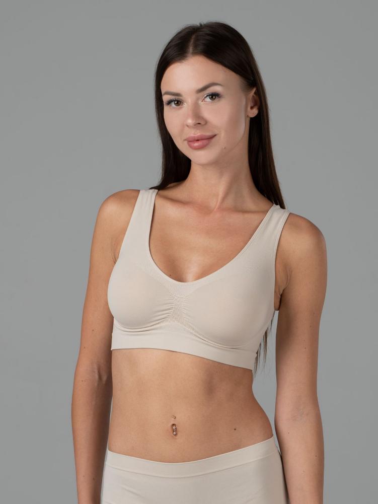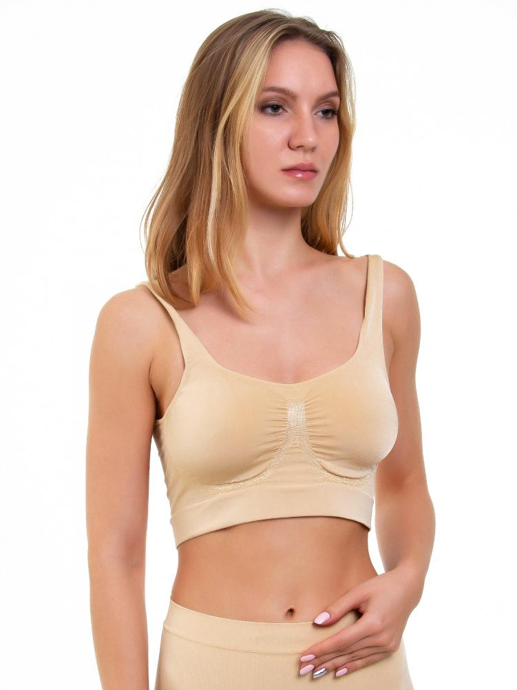 Бесшовный топ на широких бретелях. Выполнен из мягкой микрофибры с усиленной поддержкой груди размеров В, С, D. Дышащая, стойкая к износу ткань, обеспечивающая самые приятные тактильные ощущения при носке. Благодаря бесшовной технологии достигается идеальное облегание, максимальный комфорт и свобода движений, не заметен под одеждой.<br /> Полиамид 87%, Эластан 13%