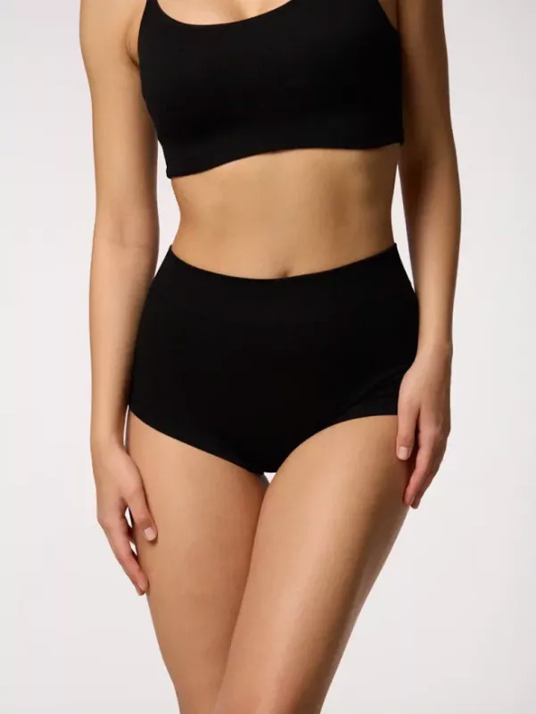 Трусы шорты из тянущегося материала, с высокой линией талии, бесшовные, с х/б ластовицей.