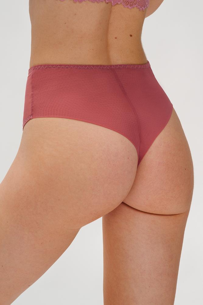 Трусы панти из эластичной сетки с кружевной декоративной деталью по переду и кружевной ластовицей. Завышенная линия талии, широкий бочок.
