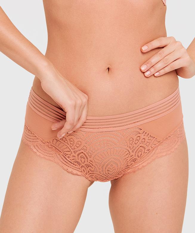 Роскошные трусики Sensera выполнены из нежной сетки и кружева с растительным узором. Широкий эластичный пояс не оставит следов на теле. Ластовица из хлопка.<br /> Состав 90%ПА/10%ПУ