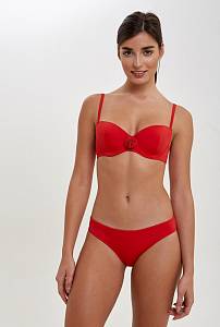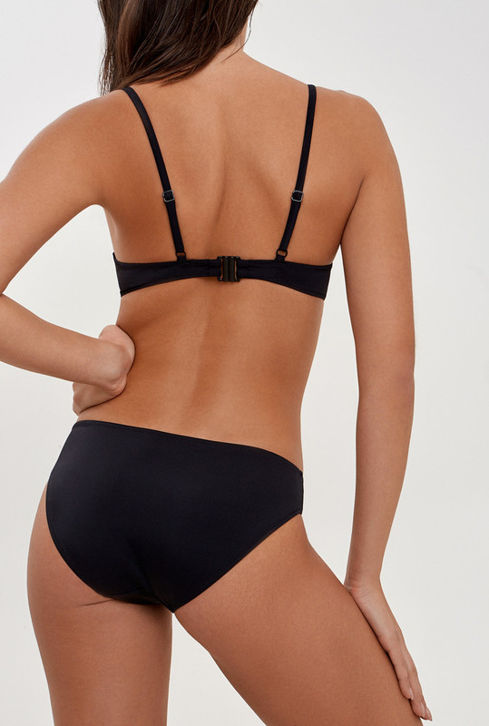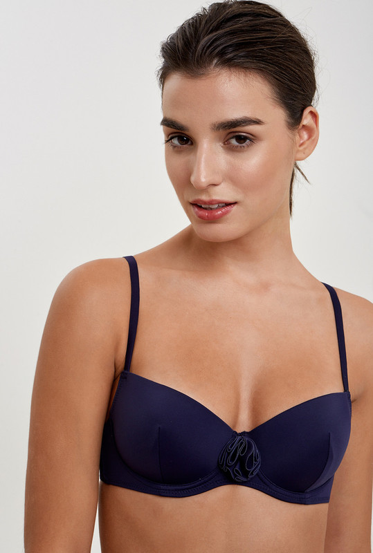 Раздельный купальник, выполненный из классической купальной ткани. Бюстгальтер формы T-Shirt без Push-up, декорированный цветком по центру. Несъемные регулируемые бретели. Трусики классической формы с низкой талией.