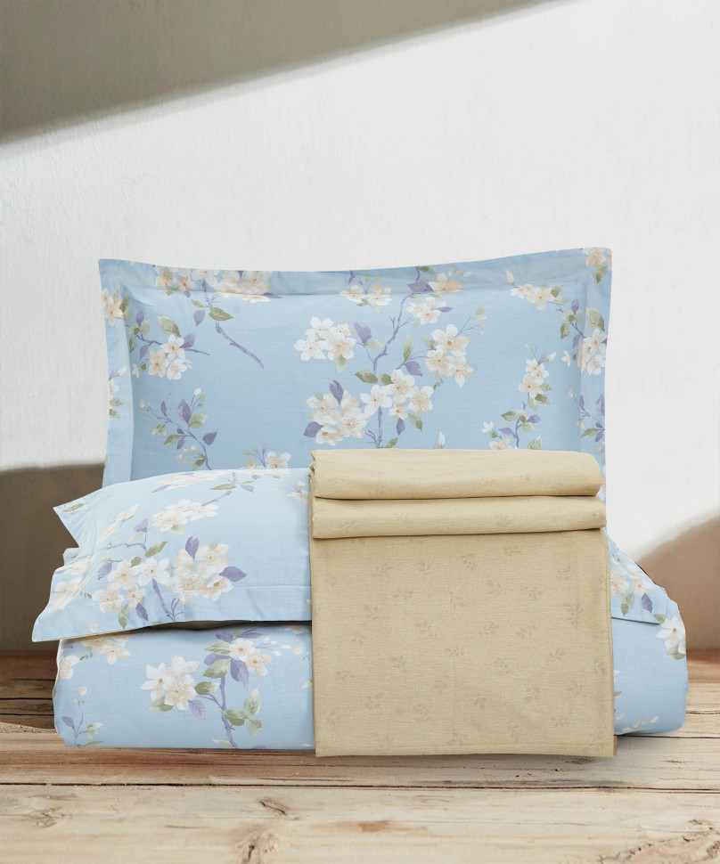 1.5 спальный: Пододеяльник 150х215 см. - 1 шт.; Простыня 160х220 см. - 1 шт.; Наволочки: 70х70 см. - 1 шт., 50х70+5 см. - 1 шт.